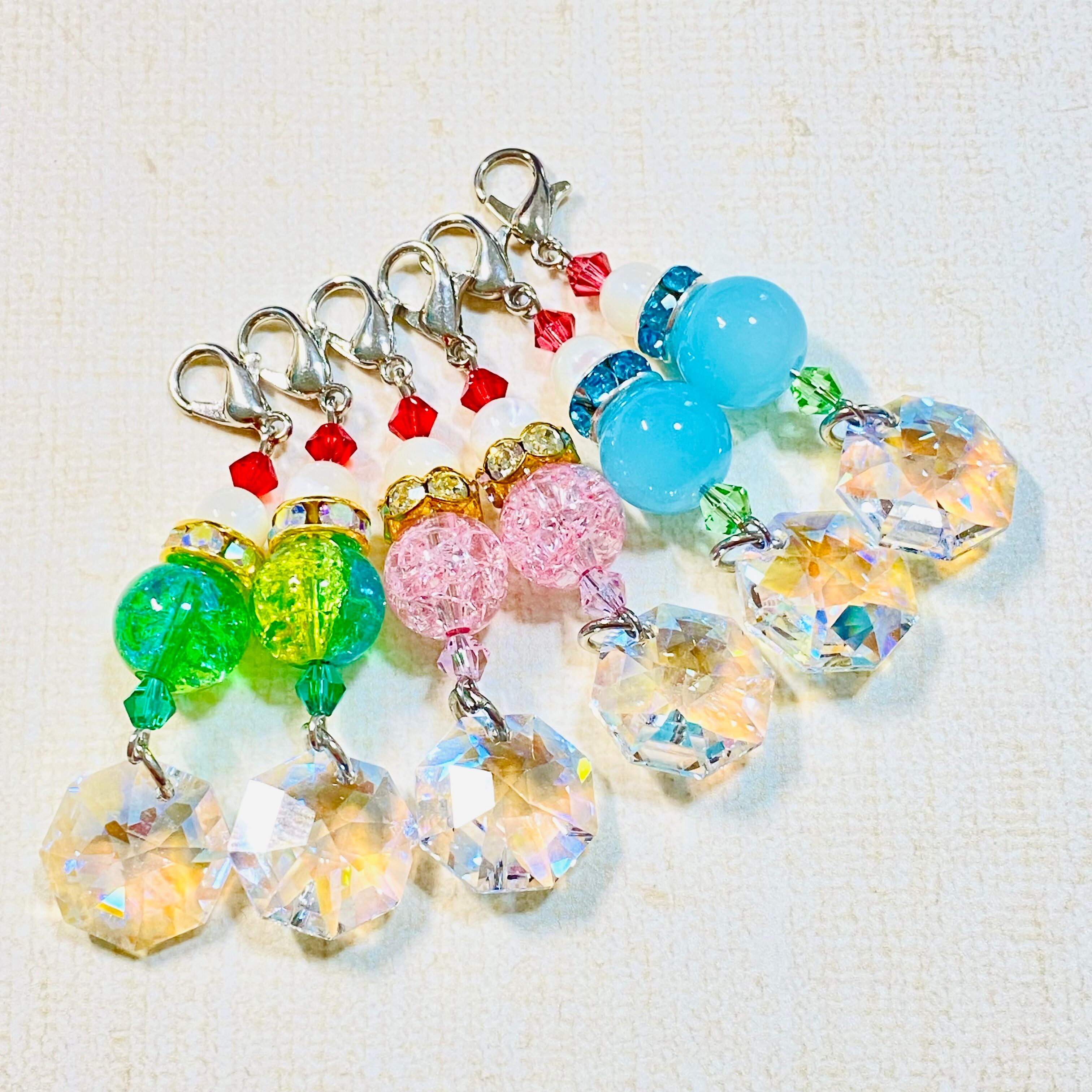 オクタゴン(八角形)のクリスタルは、人気S社のオーロラABカラーを使用しています。